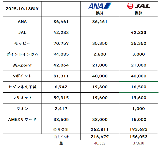 今月はAMEXのポイントを加えたから、一気に伸びました。